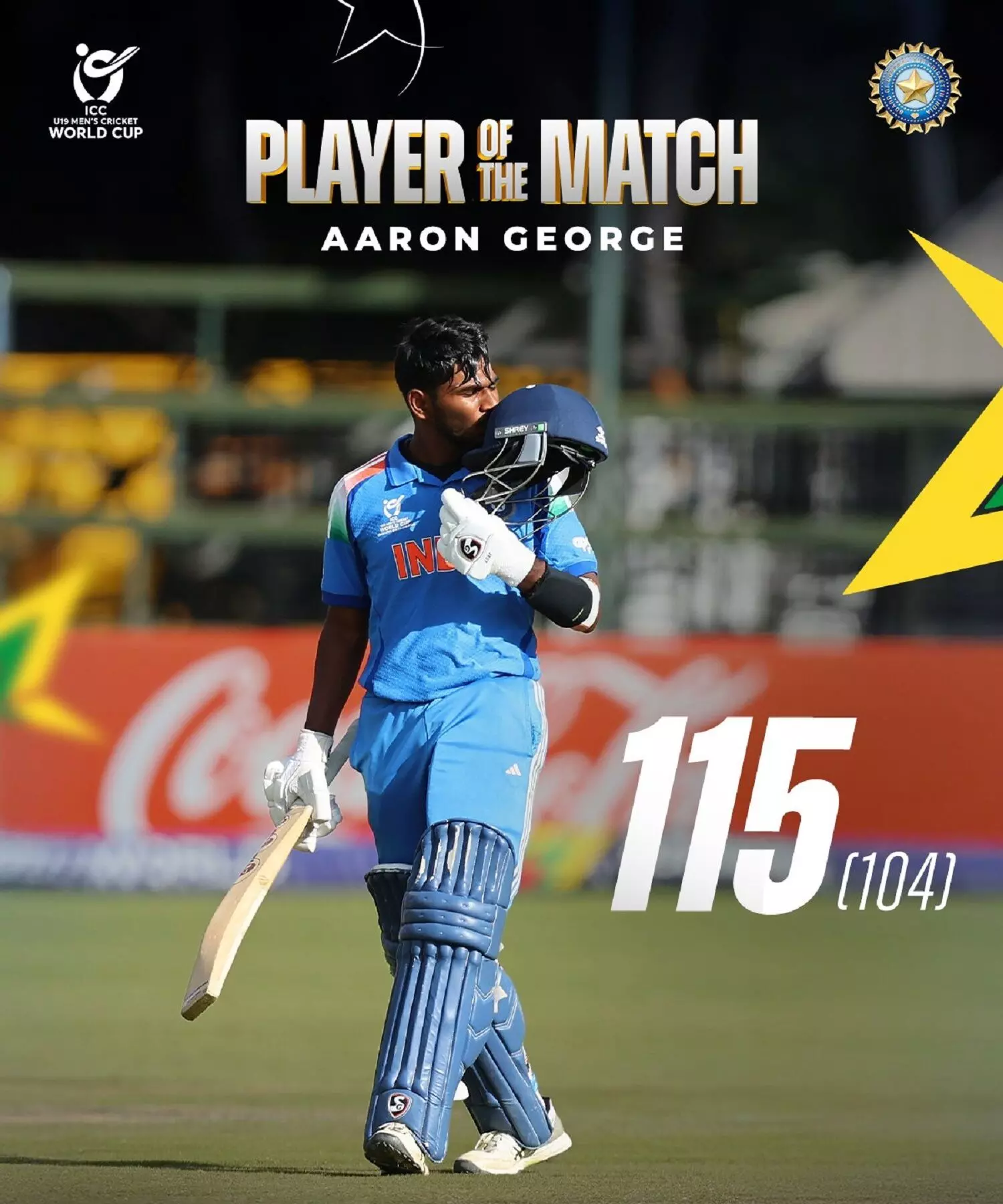 इस ऐतिहासिक जीत के हीरो रहे Aaron George ने मुश्किल हालात में टीम को संभालते हुए 105 गेंदों में 115 रन की शानदार पारी खेली। उनकी बल्लेबाजी में धैर्य और आक्रामकता का बेहतरीन संतुलन देखने को मिला। एक छोर संभालकर उन्होंने पूरे रन चेज को नियंत्रित किया और टीम को जीत की राह पर बनाए रखा।