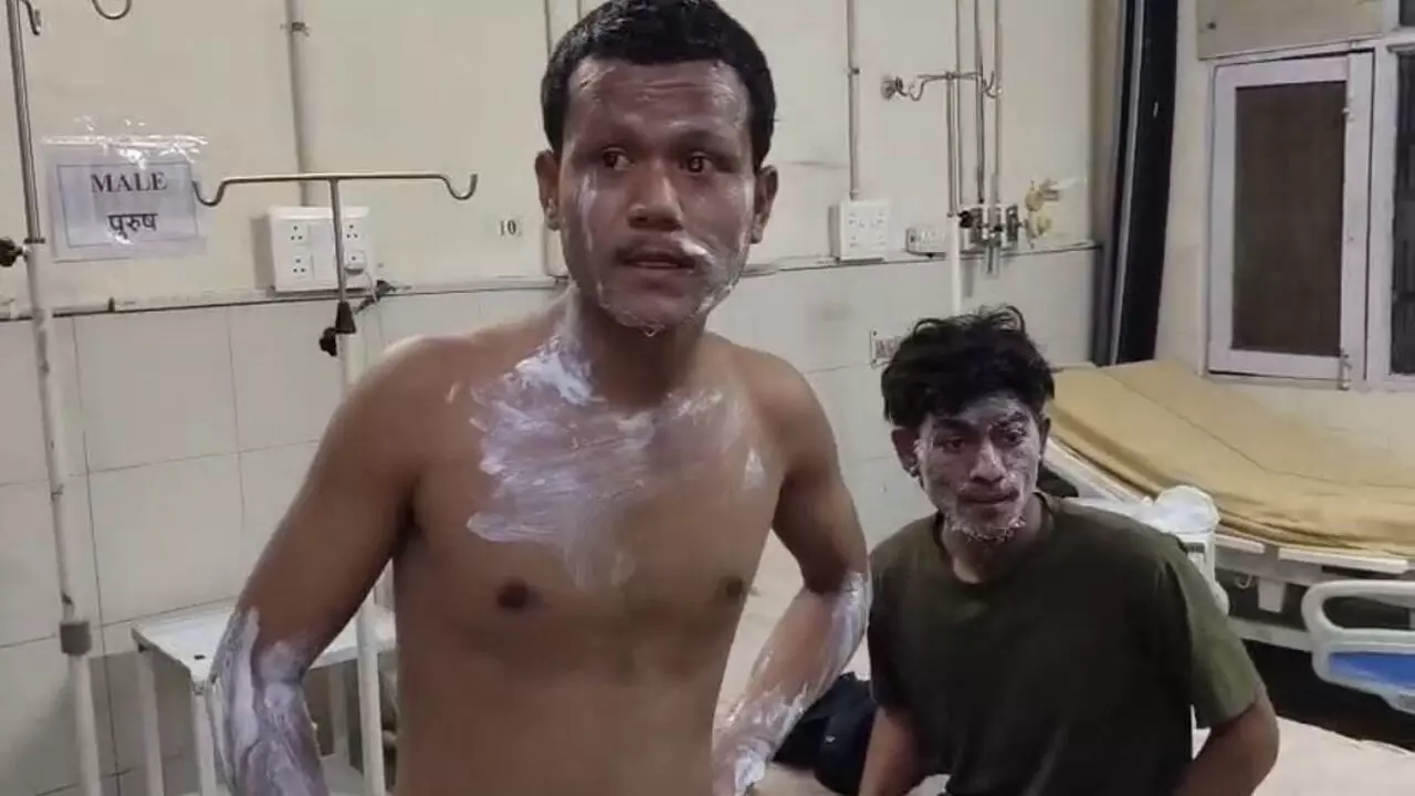 आग की चपेट में आने से झुलसे कर्मचारी का उपचार करते चिकित्सक व स्टाफ।