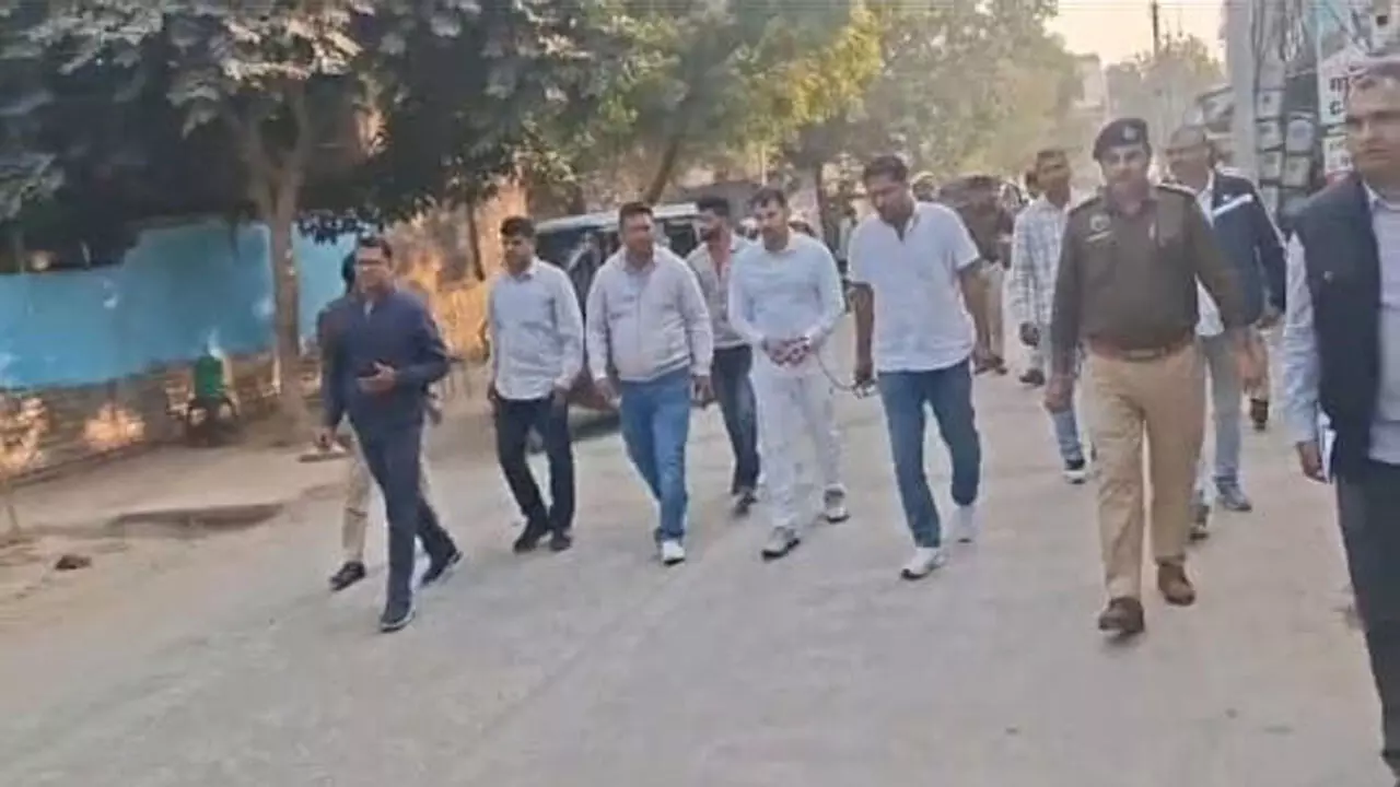 हांसी के बाजारों में दलजीत सिहाग को पैदल घुमाती पुलिस। फाइल फोटो।