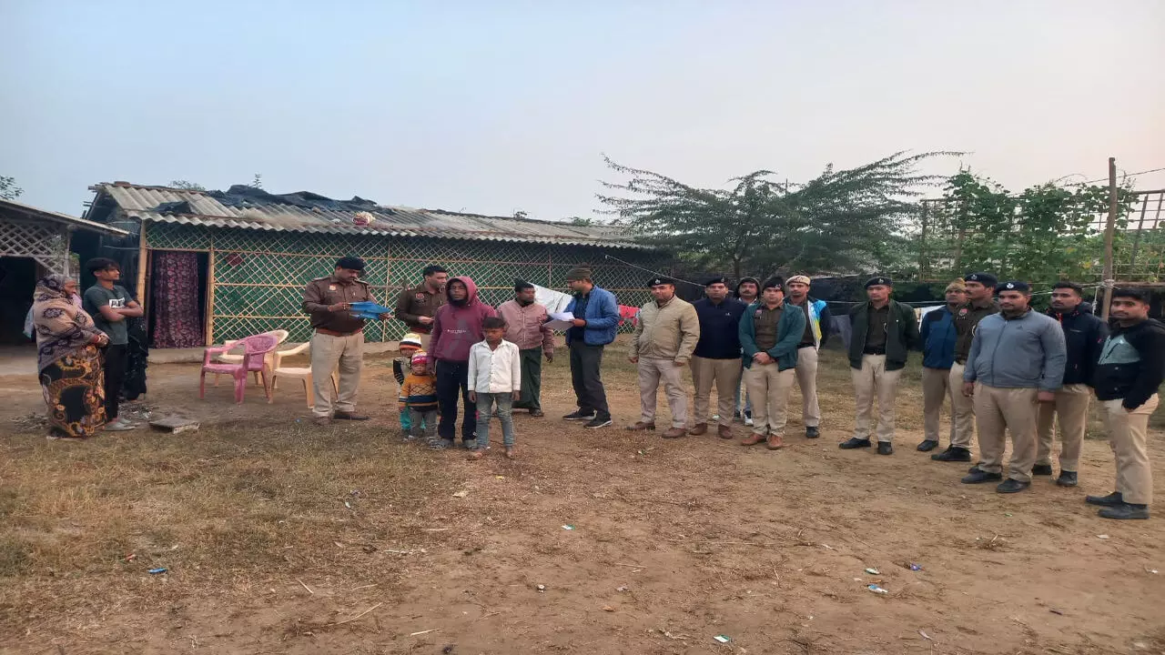 नूंह की रोहिग्यां बस्ती में जांच करती पुलिस।